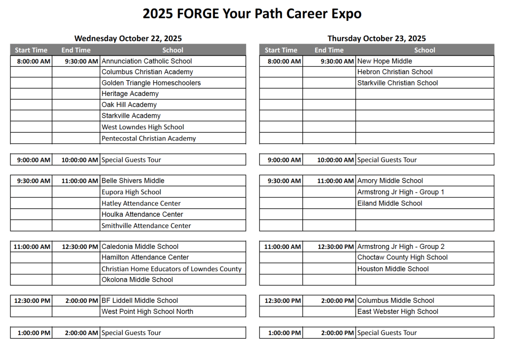 The FORGE Your Path Career Expo is where hands-on learning meets real-world opportunity. Each year, thousands of 8th graders from across our region step out of the classroom and into an interactive environment filled with heavy equipment simulators, skilled trade challenges, and industry experts ready to share their craft.