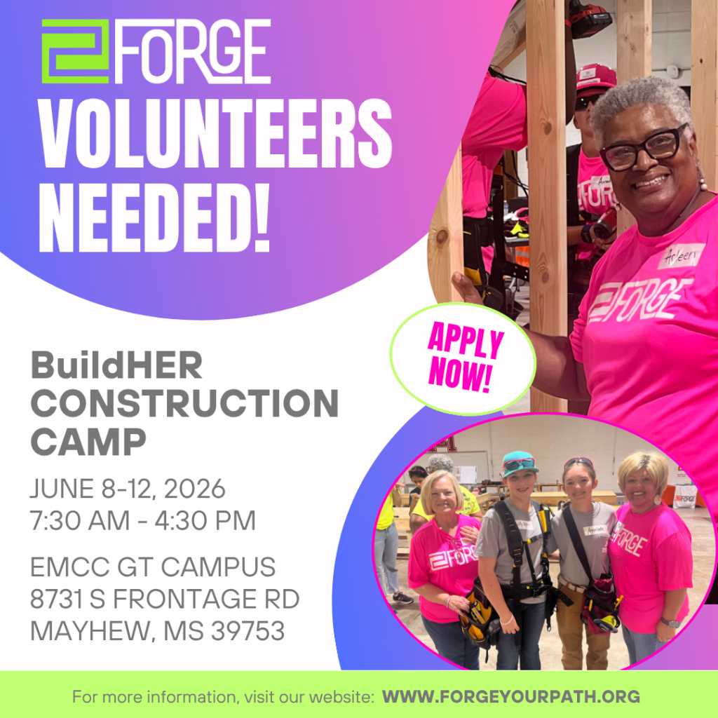 Don’t miss this opportunity to step outside your comfort zone, explore new possibilities, and start building your future with FORGE BuildHER Construction Camp.