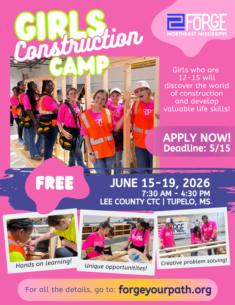 We are incredibly grateful to LEAD (Lee County Empowering, Advancing, and Developing) for supporting the 2026 FORGE NEMS BuildHER Girls Construction Camp through a generous $5,000 grant. Their investment helps make this empowering experience possible for young women across North Mississippi.